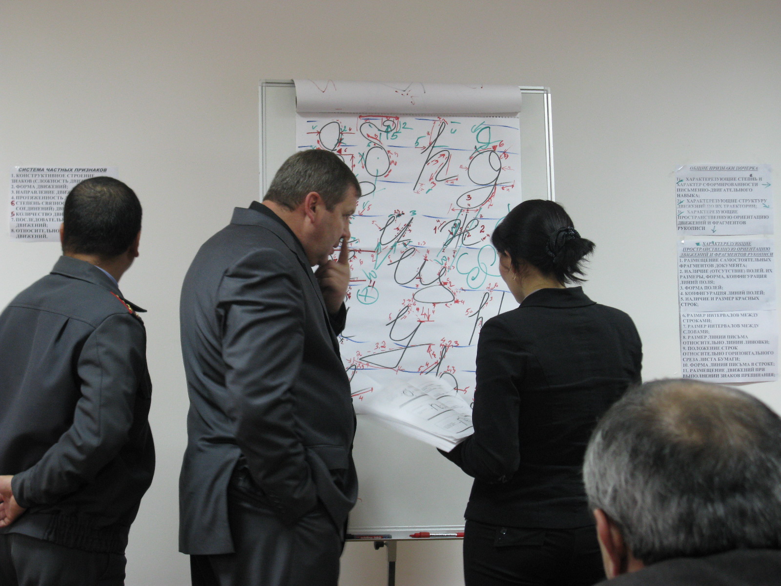Participants at a training course on handwriting analysis for Kyrgyz police officers, organized by the OSCE Centre in Bishkek, 12 December 2008.