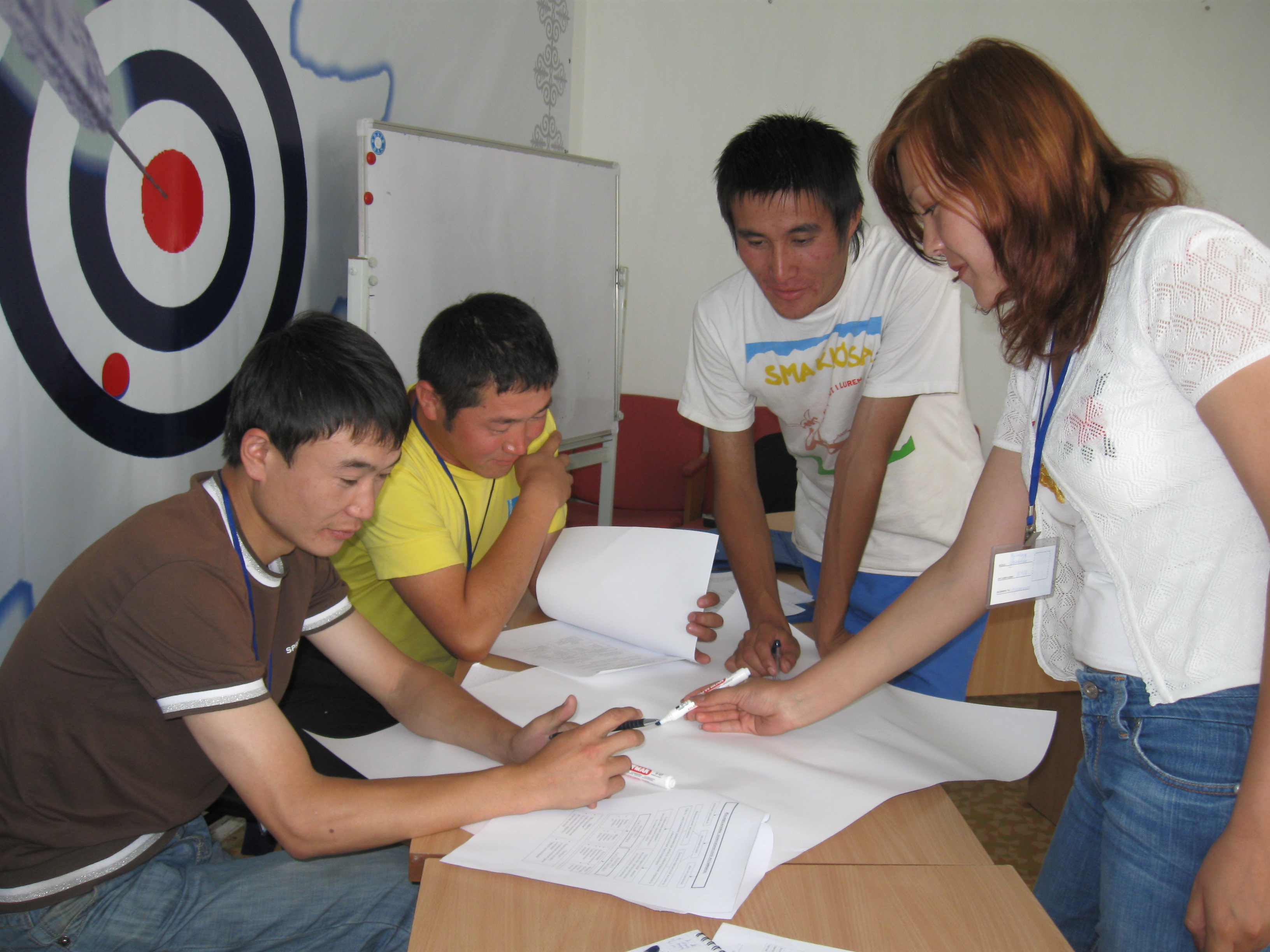 Young journalists at a training session on economic journalism supported by the OSCE Centre in Bishkek, Naryn Media Resource Centre, 25 August 2009.