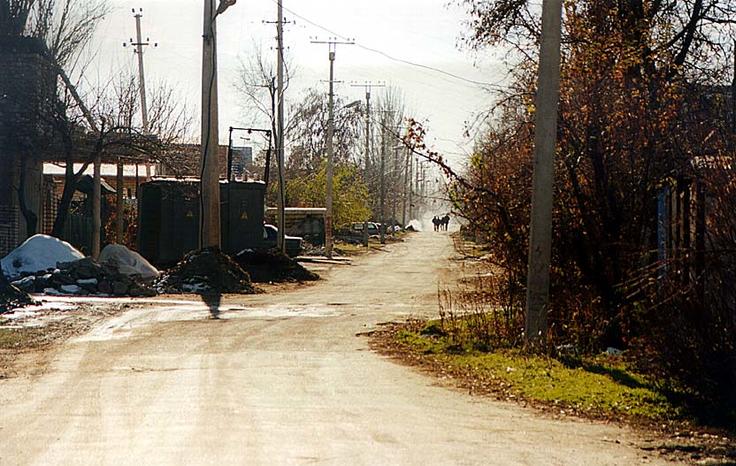 Quiet streets in a village in Kyrgyzstan on election day, 29 October 2000.