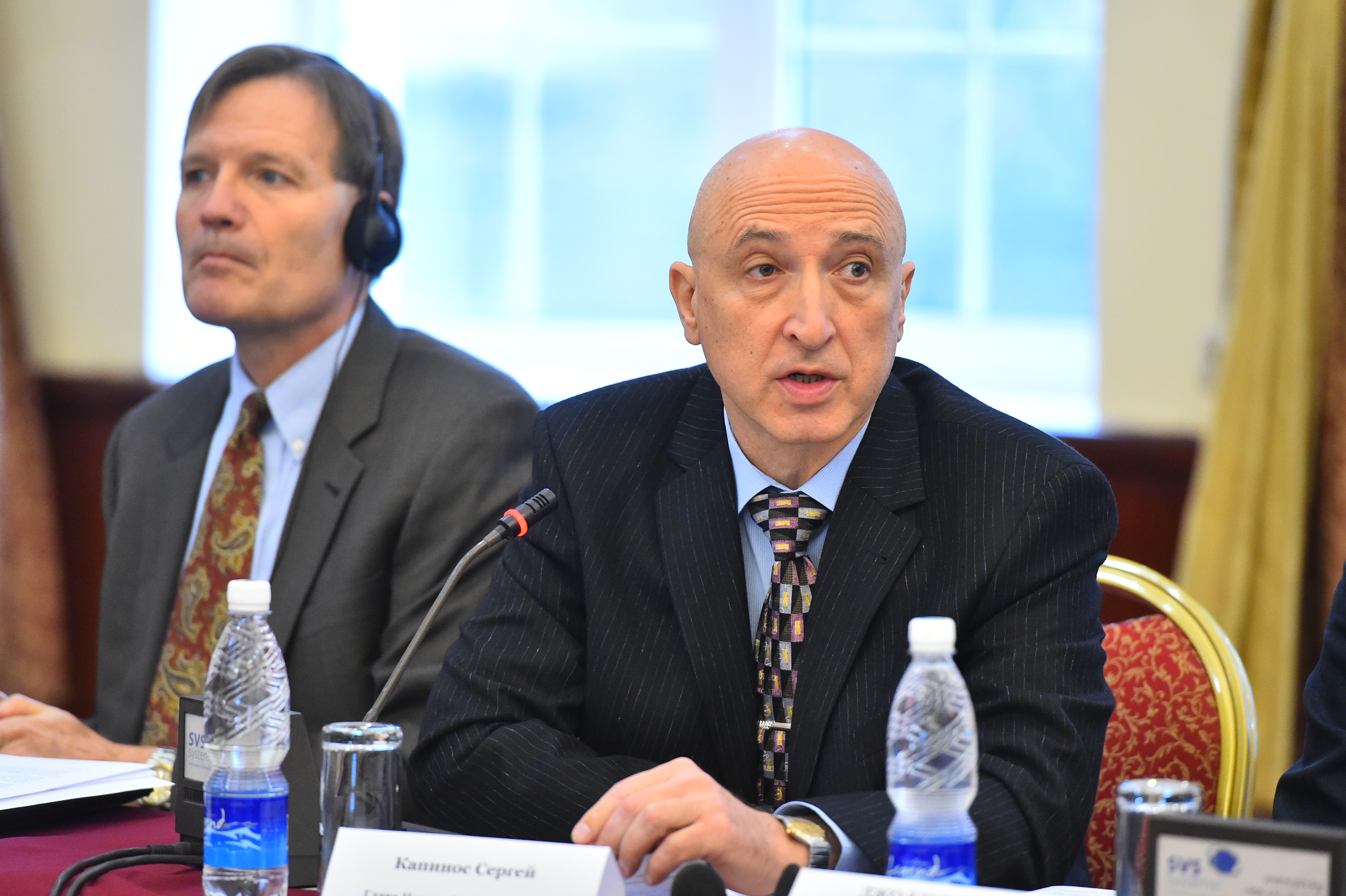 The Head of the OSCE Centre in Bishkek Sergey Kapinos delivering a welcoming speech during a public discussion on the results of the 4 October 2015 parliamentary elections in Kyrgyzstan, Bishkek, 24 November 2015.