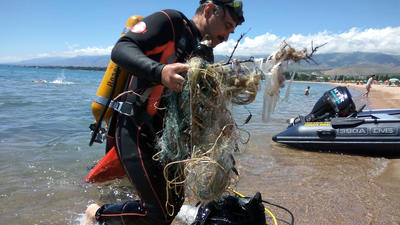 On the final day of the event, a clean-up campaign was organized with the support of divers and local NGOs in the lakeside village of Bosteri.