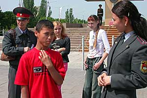 Kyrgyz police officers worked on building positive relationships with children in an OSCE community policing project, May 2004.