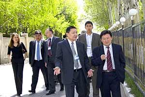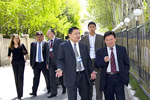 Participants arrive at a meeting focused on developing a national strategy to fight money laundering and terrorism financing in Kyrgyzstan, Bishkek, 28-29 April 2005.