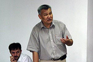 Media expert Shamaral Maychiev speaks to journalists at a training course on reporting on elections, organized by the OSCE Centre in Bishkek ahead of the 27 June 2010 constitutional referendum, Bishkek, 22 June 2010.