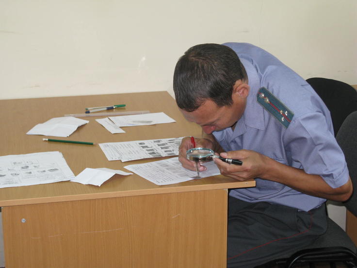 A forensic expert from Kyrgyzstan's Interior Ministry during a training course supported by the OSCE Centre in Bishkek, 23 September 2010.