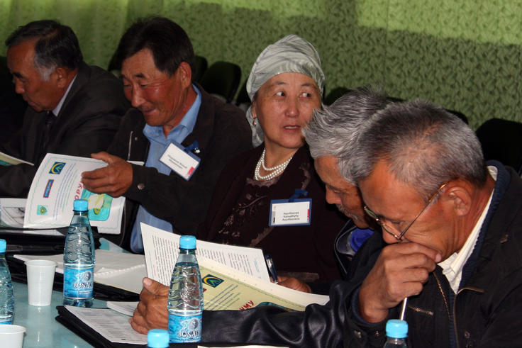 Representatives of law enforcement bodies meet with members of the public during a training seminar on strengthening local crime prevention centres, Kazarman village, Jalal-Abad province, 27 September 2010.