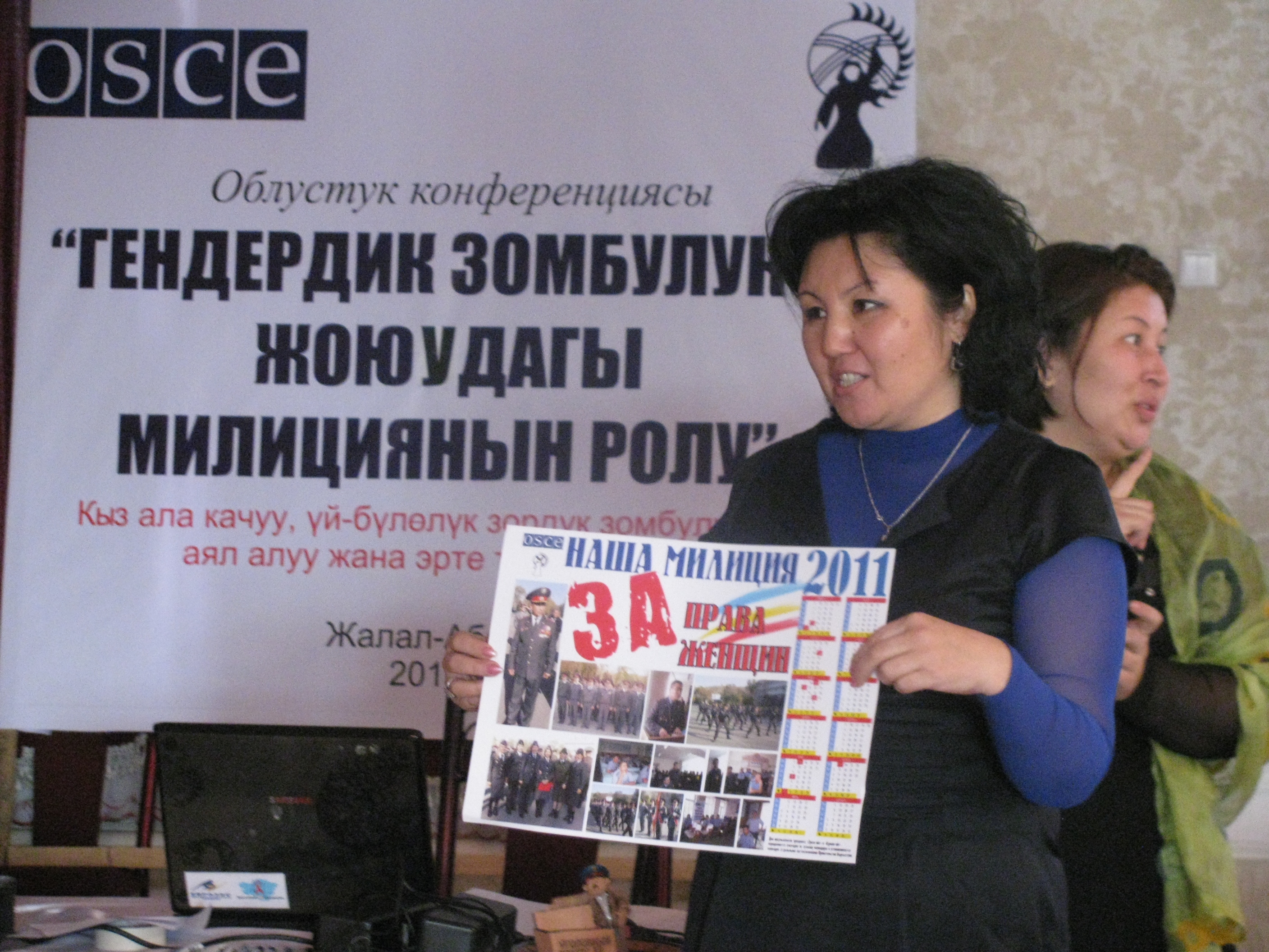 A participant at a conference organized by the Women Leaders of Jalal-Abad NGO and supported by the OSCE Centre to discuss challenges including domestic violence, bride kidnapping, polygamy and early marriage in Jalal-Abad, Kyrgyzstan, 19 November 2010.