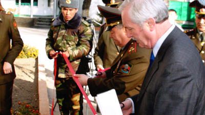 BISHKEK. 18 November 2010 - Head of National Penitentiary Service Sheishenbek Baizakov and the OSCE Head of Centre in Bishkek, Ambassador Andrew Tesoriere, today opened a new OSCE-supported prison staff training centre.