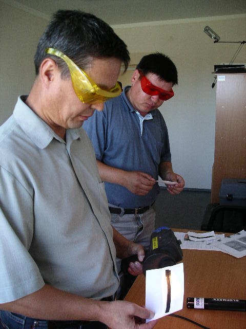 Police officers in eastern Kyrgyzstan try out equipment made available through a new regional police training centre, opened with the support of the OSCE Centre in Bishkek, 30 July 2008.