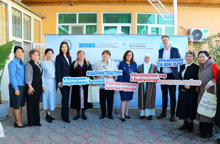 "Аялдардын катышуусу – тынчтыктын жана туруктуулуктун кепилдиги” аттуу Форумунун катышуучулары, Баткен шаары, Кыргызстан.