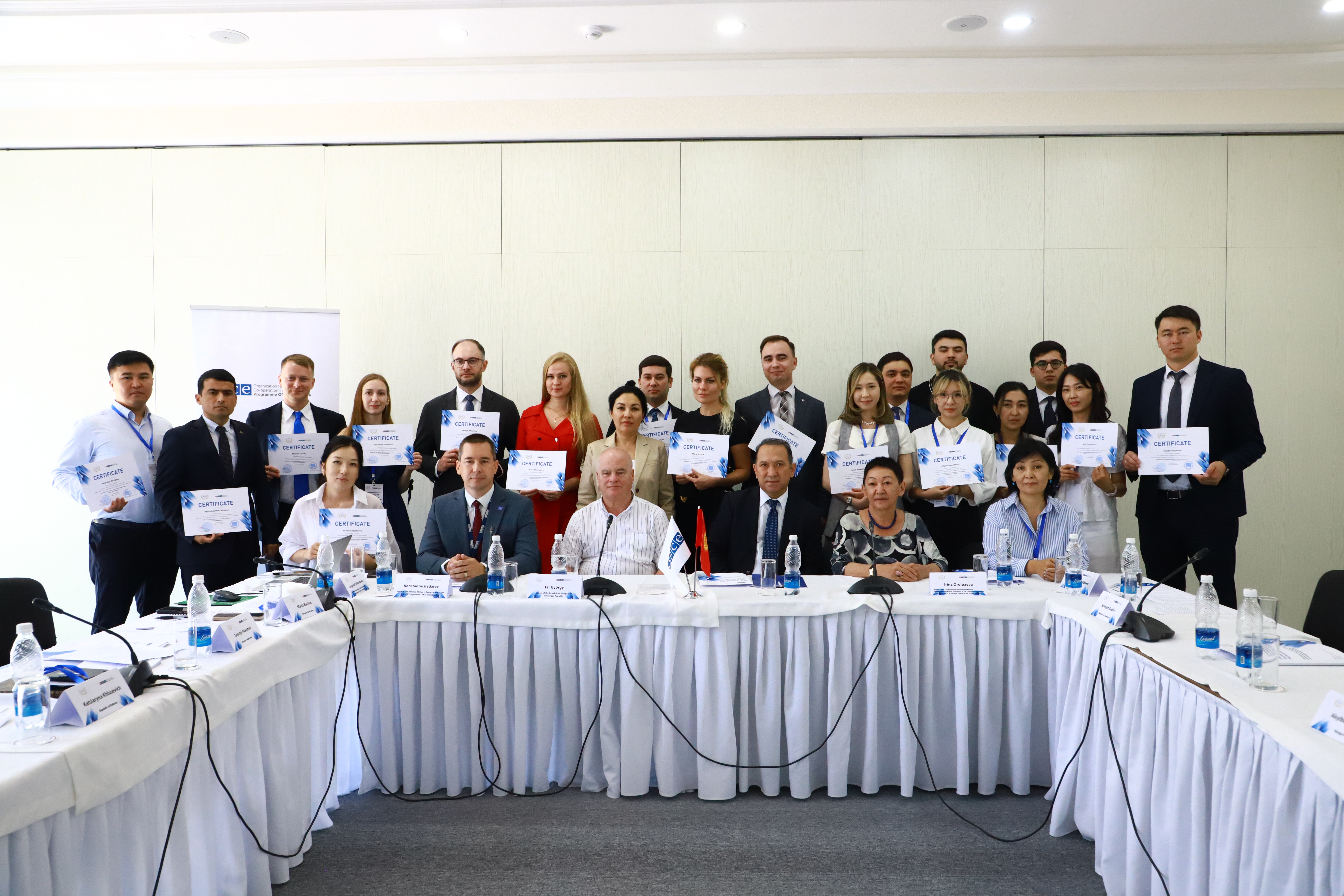 Participants of the VIII International Summer School for Young Diplomats, along with representatives of the Ministry of International Affairs of the Kyrgyz Republic, Diplomatic Academy and the OSCE Programme Office in Bishkek.