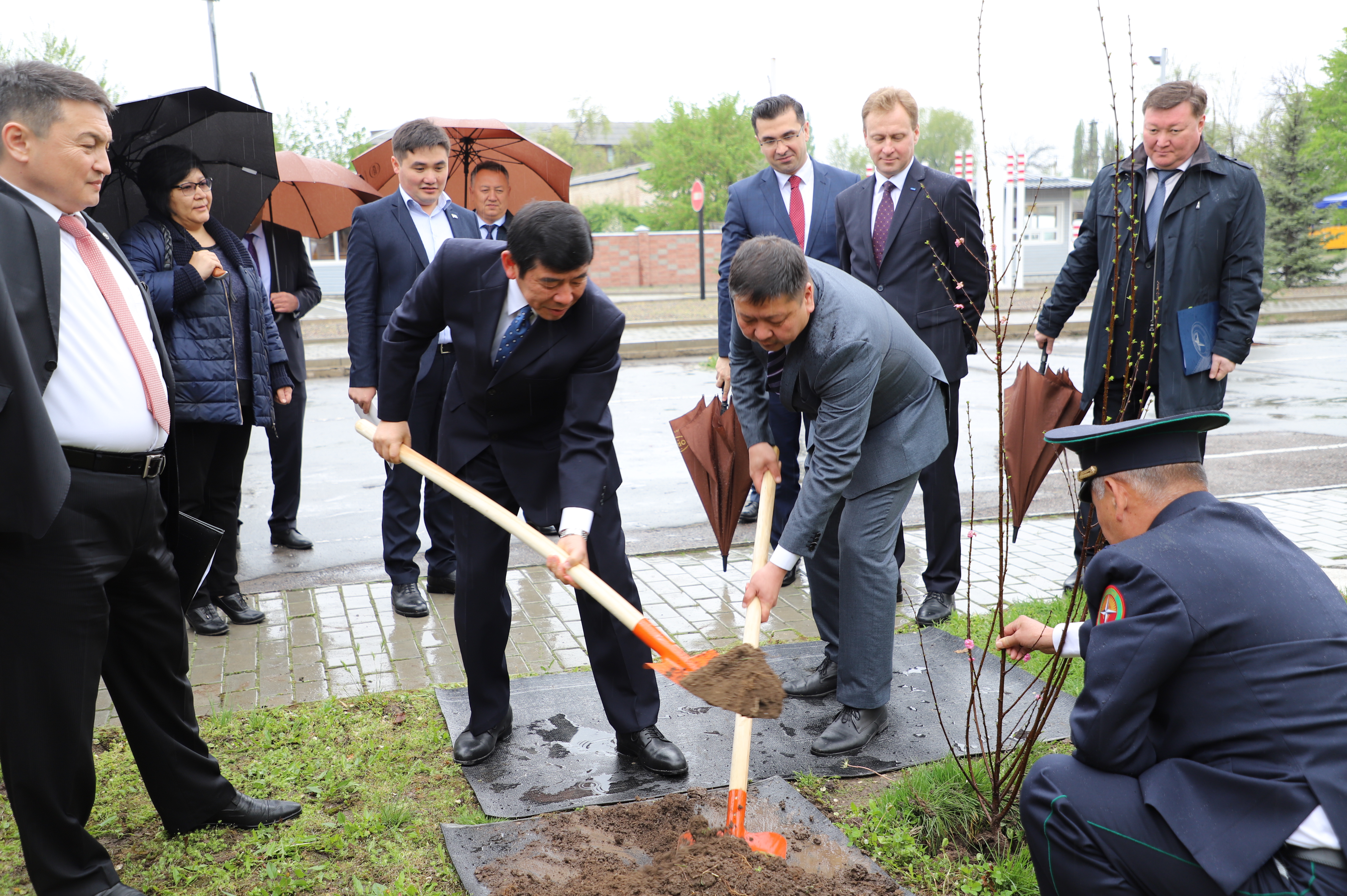 L-R: World Customs Organization (WCO) Secretary General Kunio Mikuriya with the Kyrgyz State Customs Service Chairperson Almaz Onolbekov, at a Sakura tree-planting ceremony during the official opening of the new Regional Training Centre of the WCO in Bishkek.