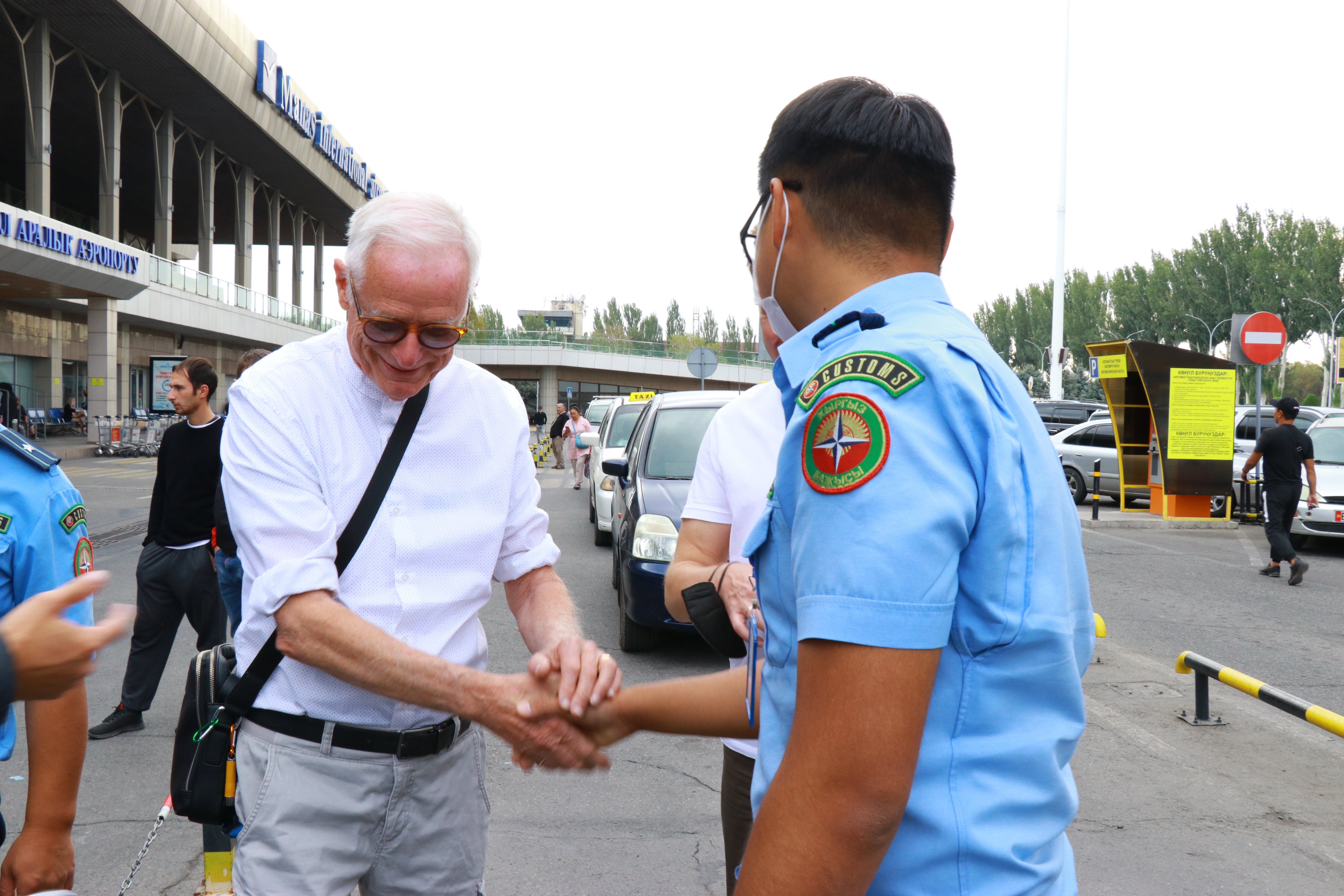 Participants of a training course on profiling following a practical exercise held at Manas International Airport, Bishkek, Kyrgyzstan, 16 September 2021. (Ranat Rysbek/OSCE)