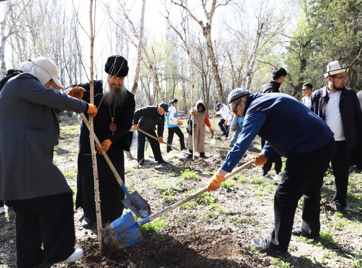 Ambassador Alexey Rogov and representatives of various religious confessions during a tree-planting event at Ataturk Park, Bishkek, 4 April 2025.