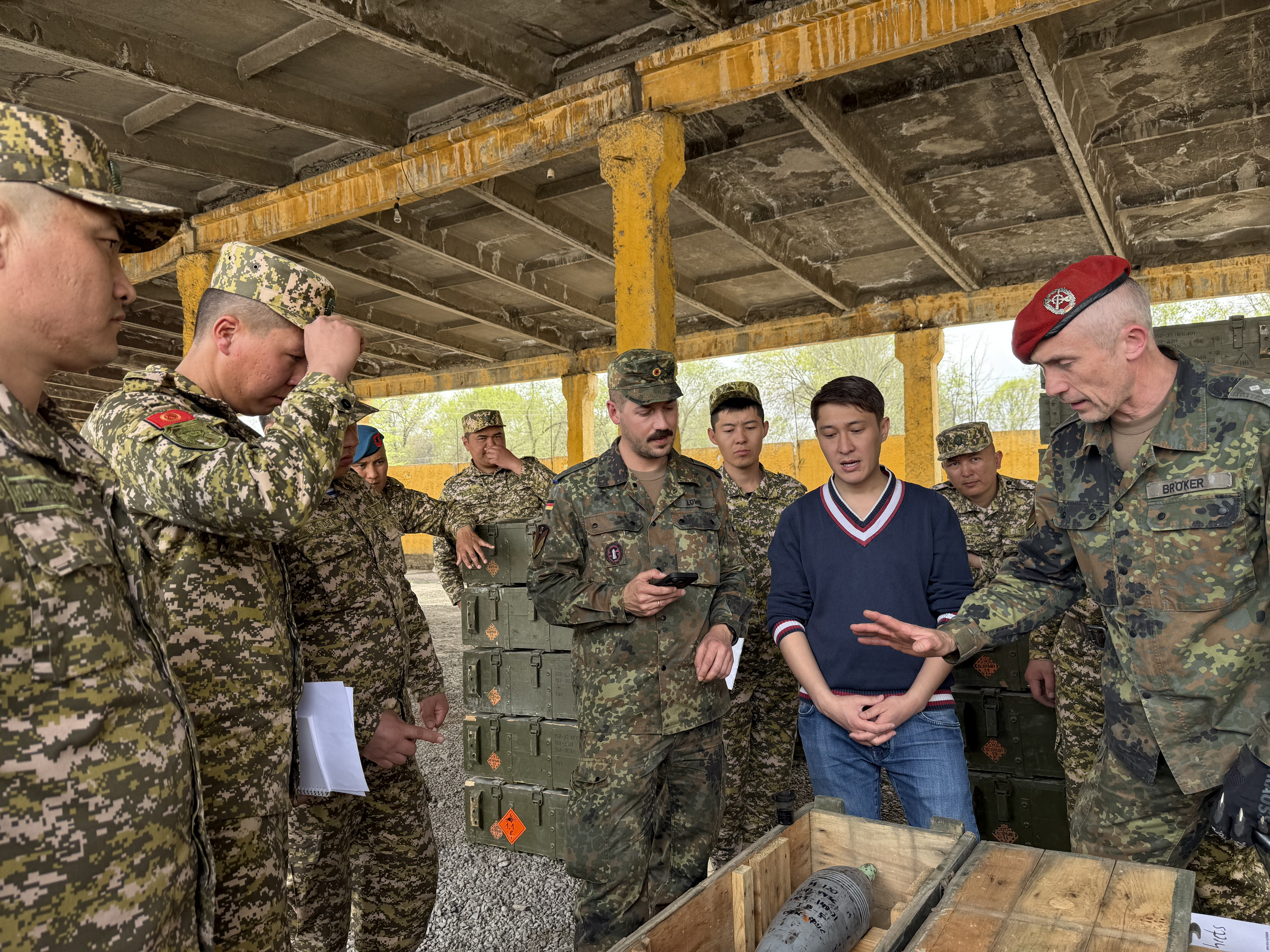 OSCE-Led Training Enhances Ammunition Management Capacity of the Ministry of Defense of the Kyrgyz Republic, participants of the training learn safe ammunition handling techniques from German Bundeswehr experts.