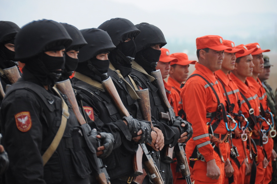Law enforcement officers taking part in an anti-terrorism exercise in Batken, southern Kyrgyzstan, that was supported by the OSCE Centre in Bishkek, 25 April 2013.