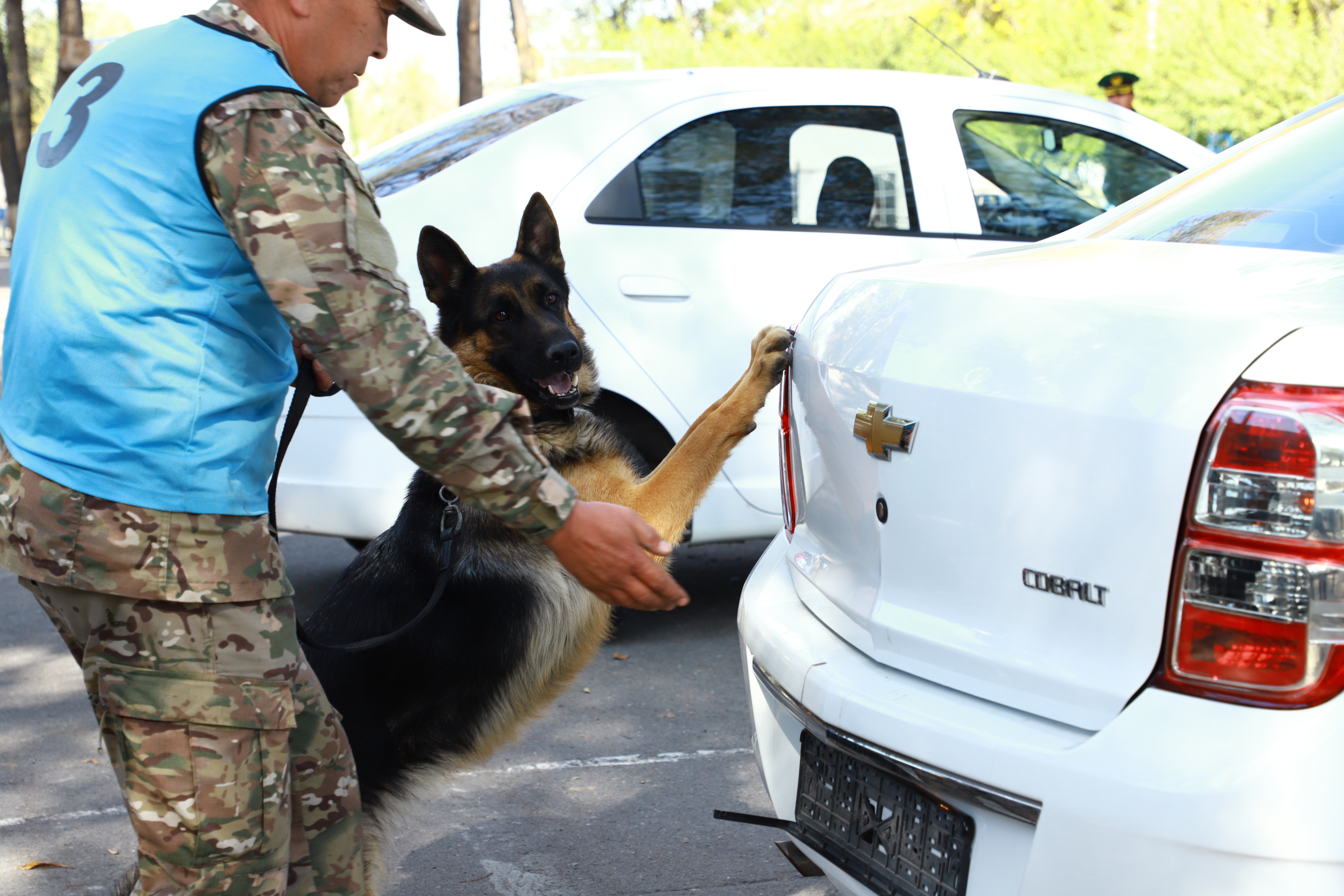 Служебная собака Джесси и ее напарник Мурат Имакеев, офицер-кинолог Государственной Службы исполнения наказаний КР.
