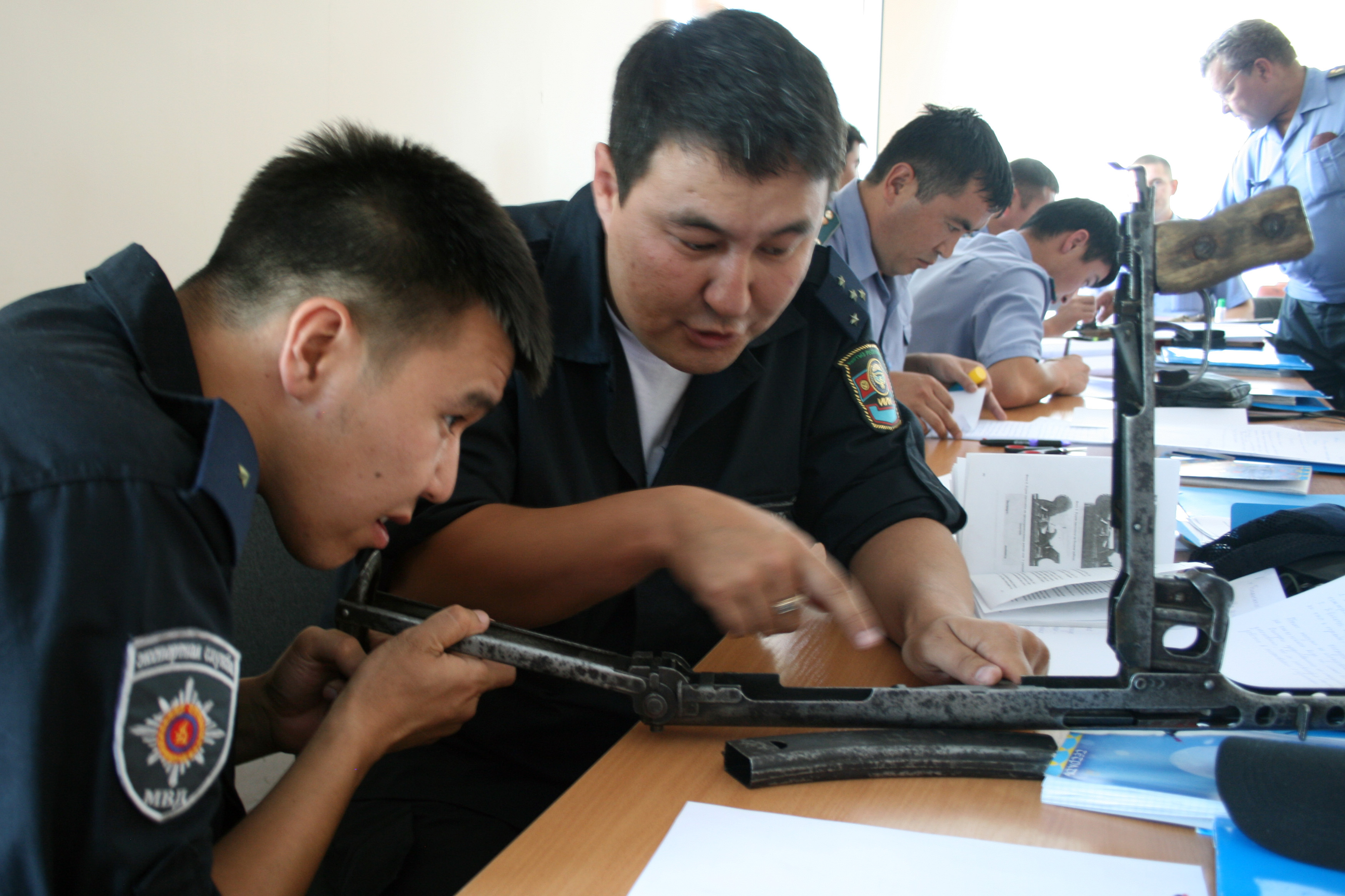 Local police during an exercise on the forensic examination of firearms and ammunition, Balykchy, 15 July 2011.