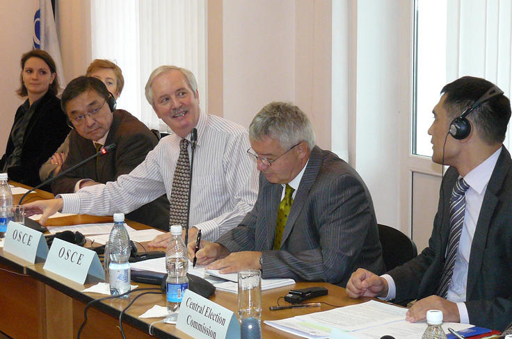 Ambassador Andrew Tesoriere, the Head of the OSCE Centre in Bishkek, speaking during a donor co-ordination meeting on assistance to Kyrgyzstan ahead of elections, hosted by the OSCE Centre in Bishkek, Bishkek, 7 October 2011.