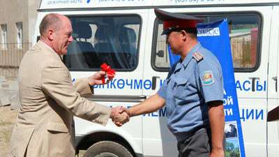 В рамках проекта «Инициатива Общественной Безопасности» Программы ОБСЕ «По полицейским вопросам» были переданы в дар поселковому отделению милиции города Баткен и отделению милиции в Ноокене города Джалал-Абад две машины Передвижных приемных милиций.